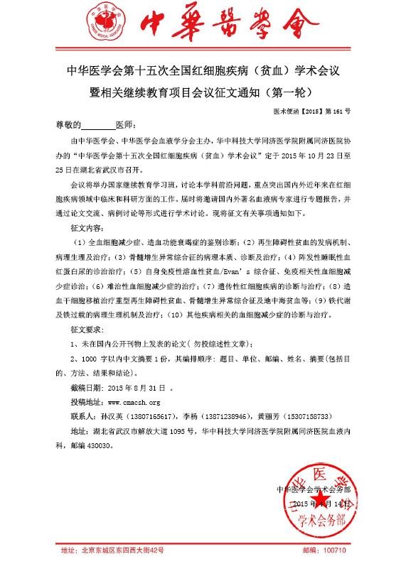 第15次全国血栓与止血学学术会议(截止2015.08.31)