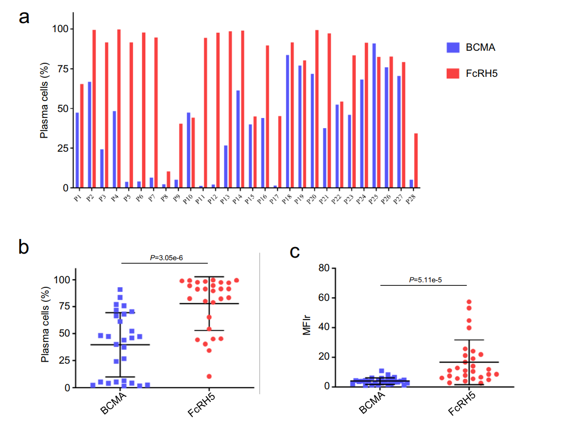 该临床前研究从多方面支持FcRH5作为CAR-T疗法治疗MM的新靶点具有较好的有效性和安全性。该成果的成功临床转化有望为复发难治性MM患者(包括BCMA本身低表达以及靶向BCMA 疗法治疗无效的患者)提供一种全新的治疗策略。