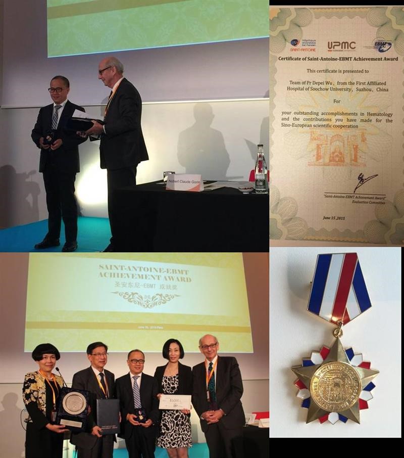 该奖项是一项依据法国法律设立的国际性医疗奖项,面向中国、法国及欧洲血液学领域中做出科学创新及卓越成就并为推动中法、中欧血液学学术交流与科技合作做出重要贡献的个人、团体或机构。自2013年起先后颁发给6位中法专家,吴教授是继北京大学人民医院黄晓军教授、上海交通大学附属瑞金医院陈赛娟院士之后获得该项奖励的中国杰出代表,这也是本中心连续第二年获得安东尼-EBMT奖项,阮长耿院士曾于2014年获得中法血液学交流卓越贡献奖。