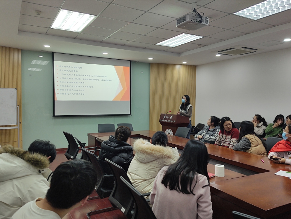 本次安全培训首先通过分享今年发生的几次重大火灾事故,再次强调了消防安全的重要性,提醒师生规范化使用电器、拖线板及电瓶车充电等,加强大家在日常工作学习中防火意识。其次,就实验室开工时卫生环境、个人防护、用水用电、化学品的使用及保存、气体钢瓶的存放与实验进行了重点注意的事项的培训,对师生在校期间需要注意到的安全问题和实验规定进行了全面详细的培训。